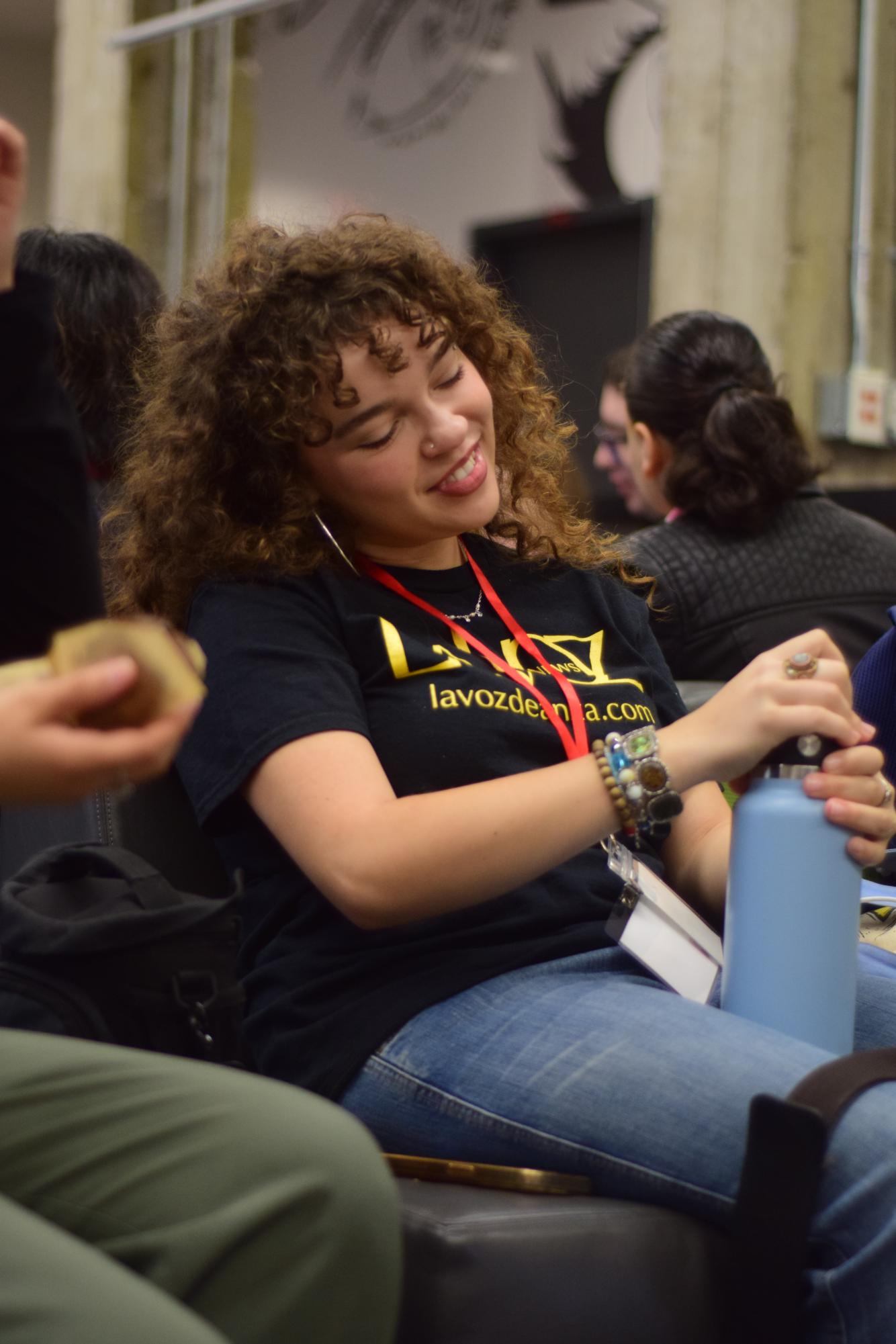 Opinions Editor Mariana Frias Da Costa sits with other La Voz staff members before heading to the keynote speeches.